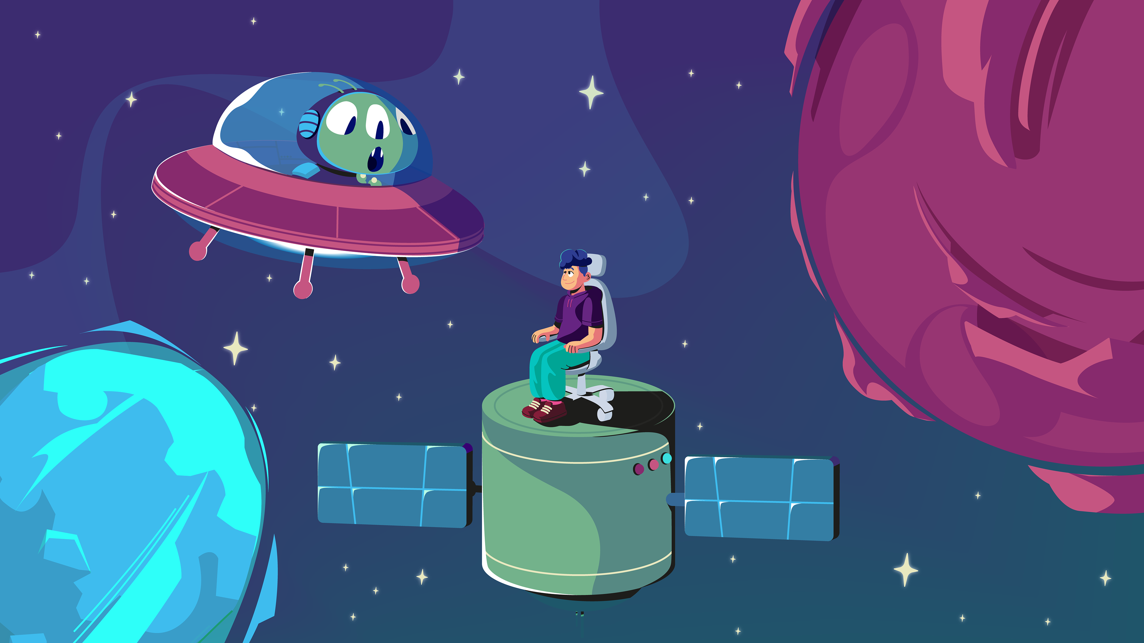 I had the opportunity of work in the character animation for Alfy Returns Home, a story about a guy with amnesia who doesn't realize he's not from Earth.